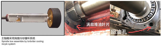主軸箱采用專利技術"渦扇冷卻循環系統"。加快潤滑油的循化速度,軸承不缺油;