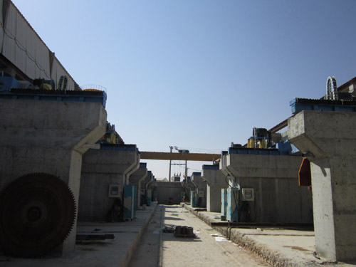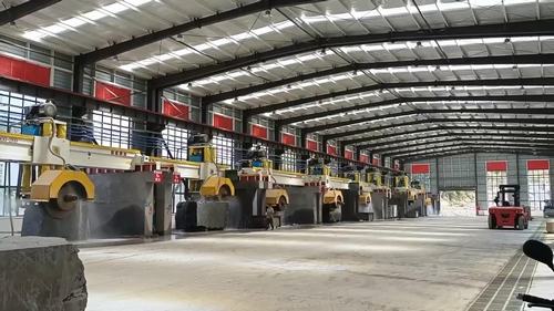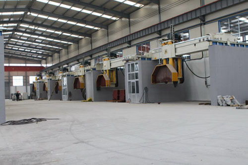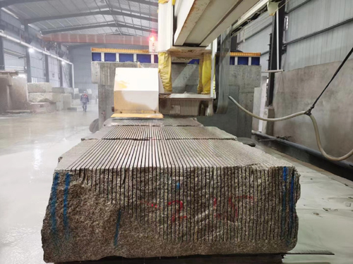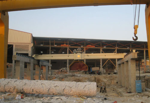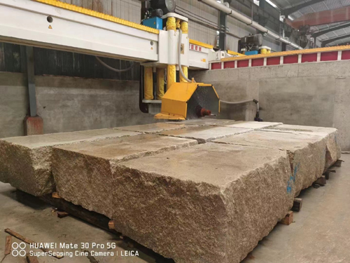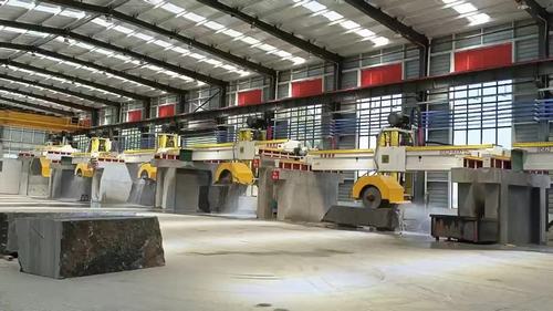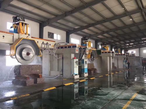 ? ??本機橫梁采用鋼制構造件, 強度高可制成大跨度梁而不斷裂。機重量重,切割平穩、下刀量大、產量高。 橫梁切割行走導軌采用高精度線性軌道,機身升降結構采用大直徑四導柱液壓升降。同時采用專有技術: 立柱及邊梁,在切割時有液壓鎖緊裝置;確保切割時整體機身不晃動(選配)。綜合以上幾項特點該機在加工荒料時,有切割平穩、下刀量深、能耗低;石板材平整度高等優點, 該設備特別適用于大批量石板材加工及高價值大板加工等。