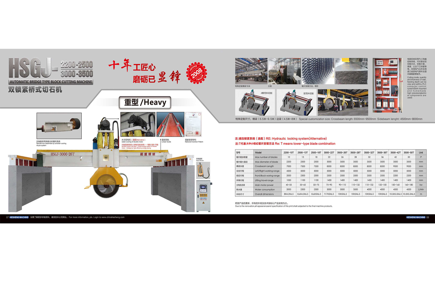 HSGJ-2200/2500/3000/3500 雙鎖緊橋式切石機 【液壓橋式切石機;橋式組合鋸;橋式大切機】