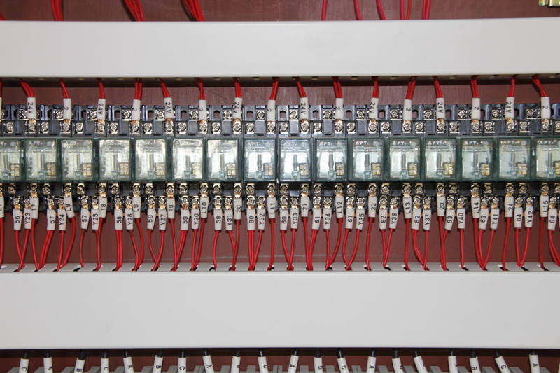 ? ??3.該機控制系統采用PLC終端控制,以液晶顯示觸摸屏終端為人機界面進行參數設定,設備運行過程中設有故障提示等等。該機適用于花崗石條板的連續磨削及拋光。板材輸送帶、磨盤橫移梁的工作速度均為變頻器調速;磨盤工作壓力、板材的磨削寬度在設定值范圍內可調。本機可對板材形狀自動識別,每個磨盤(磨頭)可根據識別板材的形狀自動升降,同時對板材磨削進行跟蹤記錄。整機均按標準化生產,性能穩定、故障率低等優點。